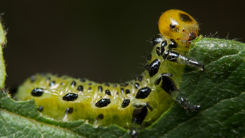ハグロハバチ 成虫と幼虫