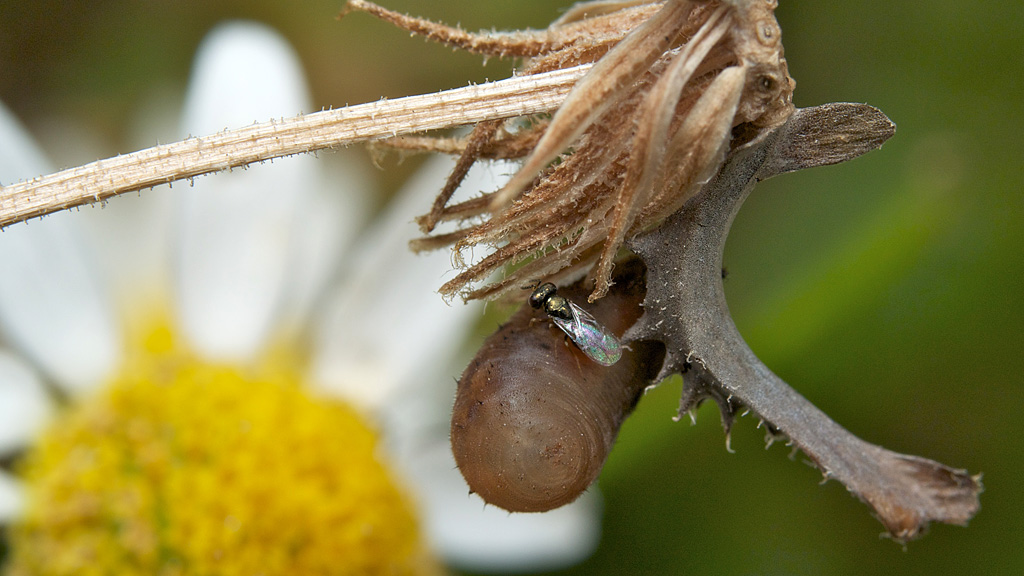 ヒラタアブトビコバチ 産卵 その2